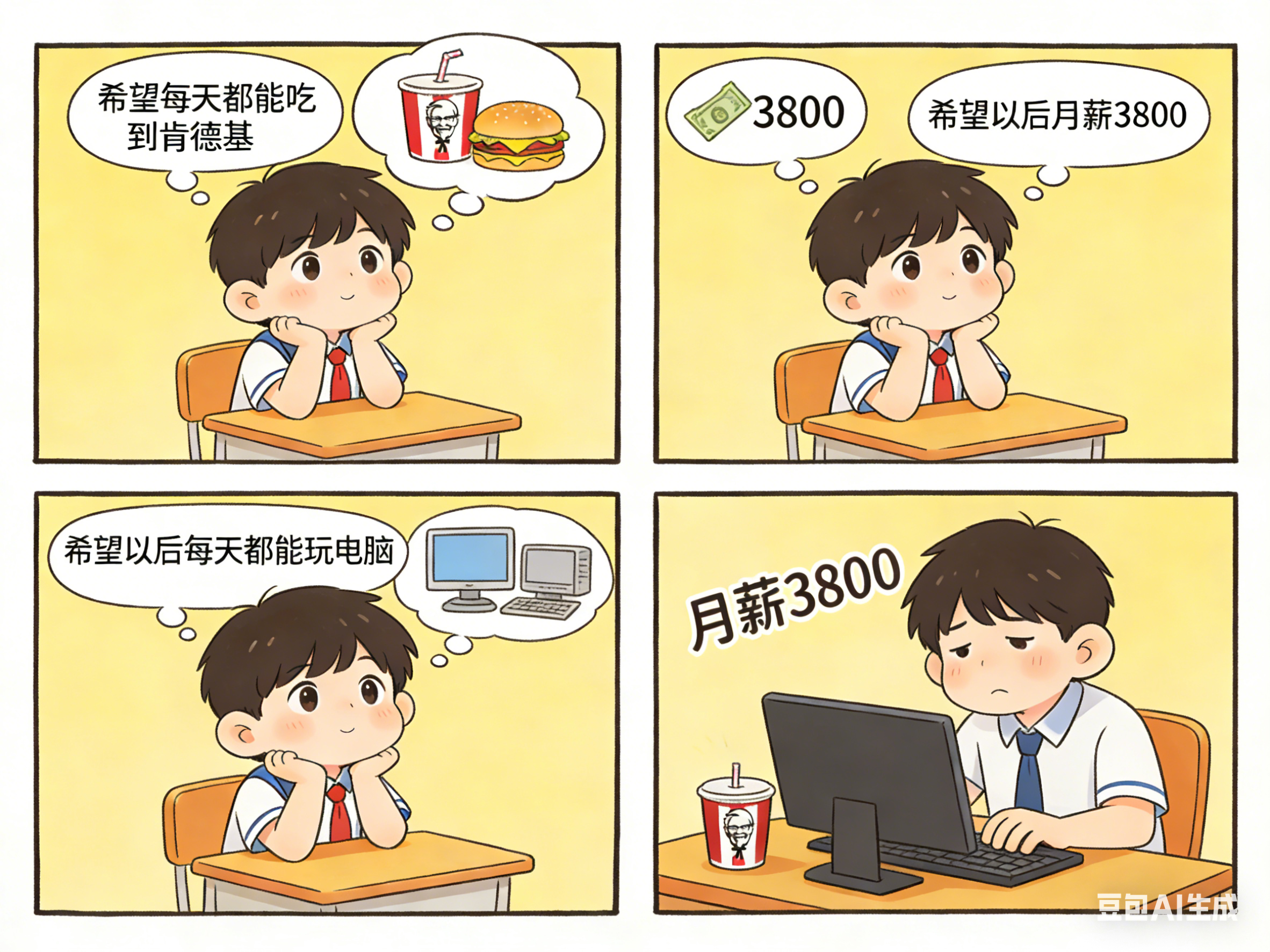 作为小镇青年,小时候的梦想是月入3800,每天都能吃到肯德基!